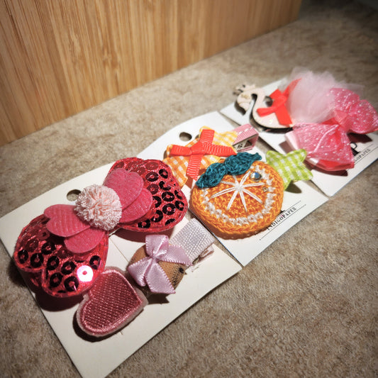 Pink Swan, Pink Sparkle Bow, Orange Slice Hair Clip Set